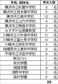ボンド杯 小中高校生囲碁段級位認定大会 エントリー状況